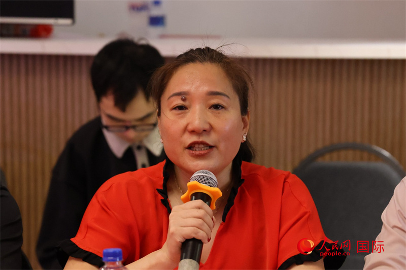 巴西華人文化交流協(xié)會執(zhí)行主席季春苗在座談會上致辭。人民網(wǎng)記者 陳海琪攝