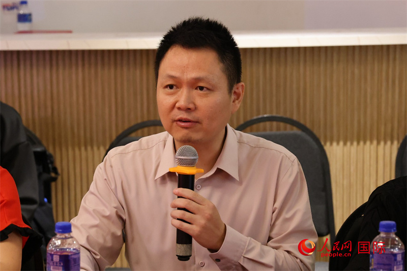 清華大學(xué)黨委研工部副部長蘭旻在座談會上致辭。人民網(wǎng)記者 陳海琪攝
