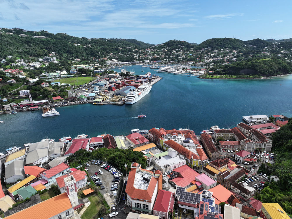 這是1月7日拍攝的格林納達(dá)首都圣喬治風(fēng)光(無人機(jī)照片)。新華社記者趙凱攝