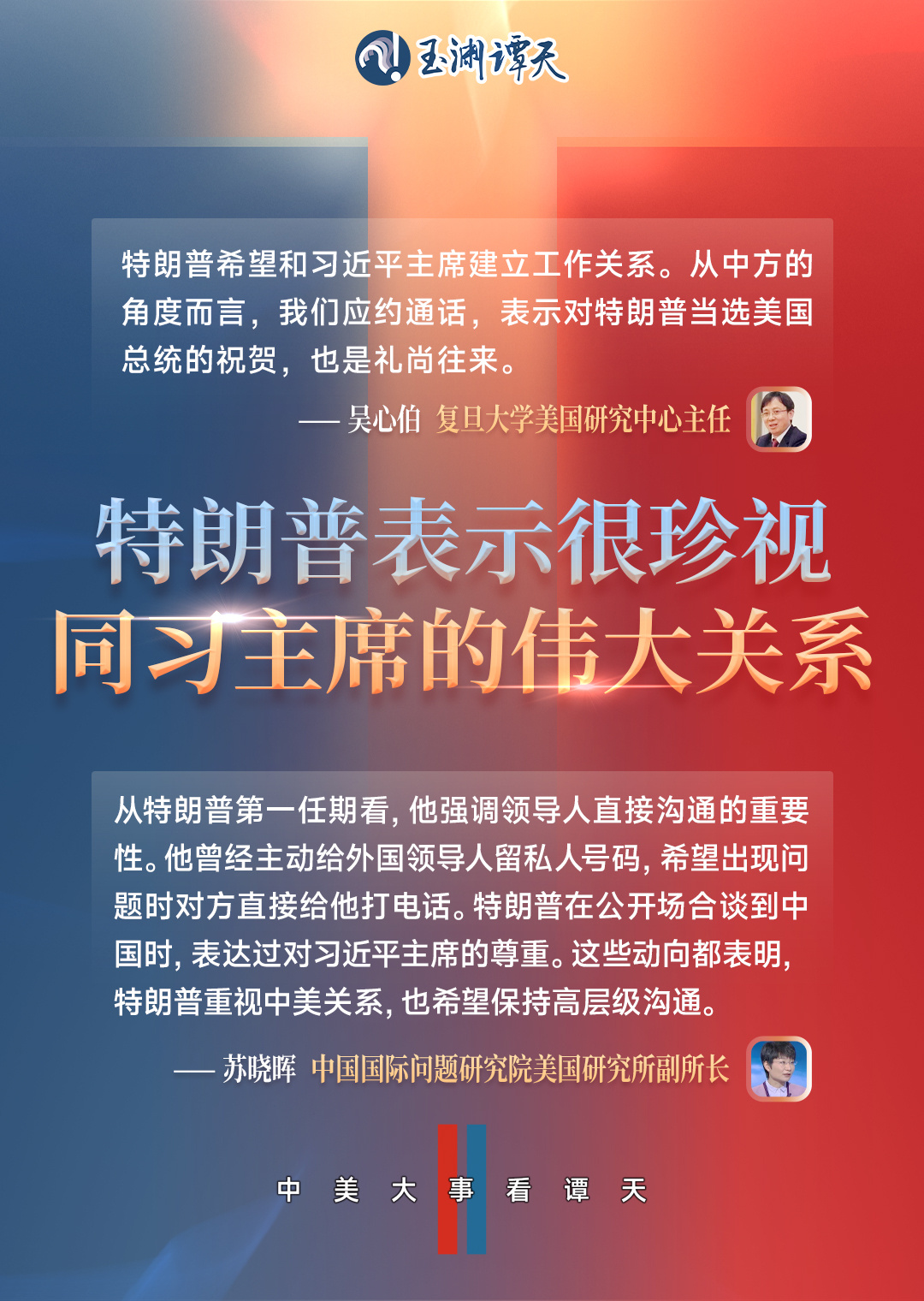 1月17日晚,國家主席習(xí)近平同美國當(dāng)選總統(tǒng)特朗普通電話。一個值得注意的細(xì)節(jié)是,此次通話,距離特朗普正式就職還有3天。這通電話,意味著什么?來看譚主的獨(dú)家解讀。
