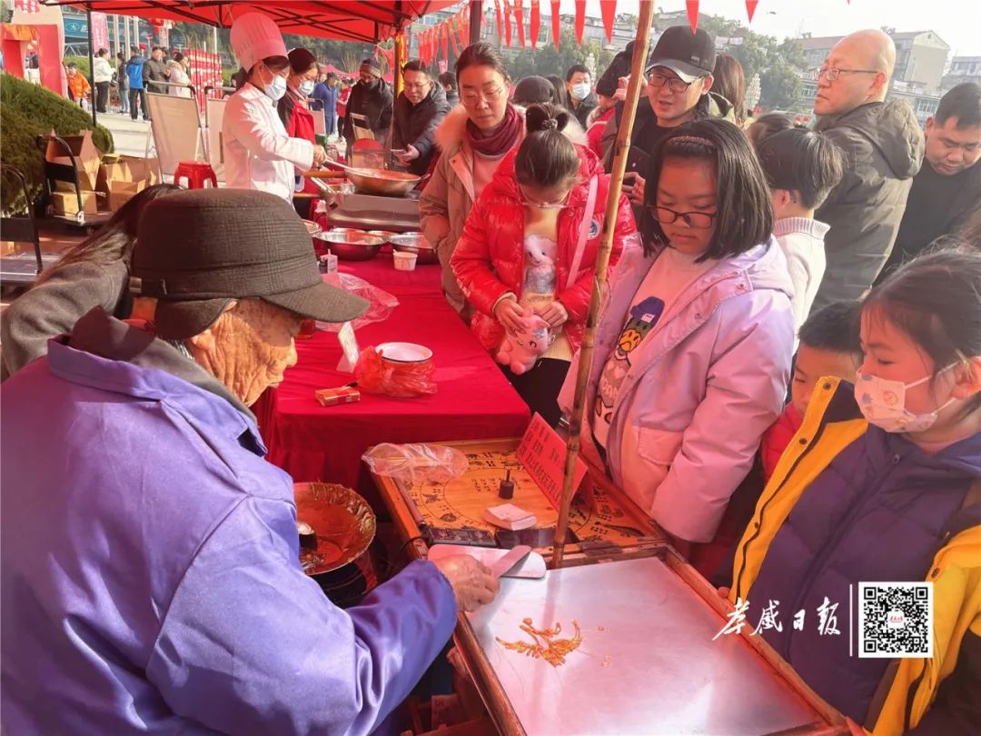 孝南轉(zhuǎn)糖人展位前,市民排起長(zhǎng)隊(duì)?!拔覂鹤酉矚g吃。今天上午孩子同學(xué)來過,說活動(dòng)非常熱鬧,我也帶孩子來看看,活動(dòng)組織得真不錯(cuò)?!奔易∥牟w附近的張女士說,自己今天特地帶孩子趕來,每個(gè)展位都轉(zhuǎn)了,收獲滿滿。