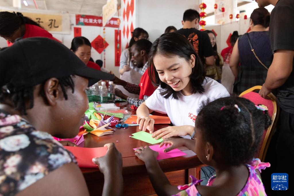 在廟會現(xiàn)場的贊比亞孔子學(xué)院展位前,人頭攢動。包括書法體驗、剪紙、折紙展示和猜字謎等豐富的文化互動項目,吸引人們紛紛參與體驗。一位贊比亞媽媽帶著孩子在老師指導(dǎo)下完成她的第一個中國結(jié)作品,她高興地說:“原來中國藝術(shù)這么有趣!希望我的孩子有一天可以去孔子學(xué)院學(xué)習(xí)。”
