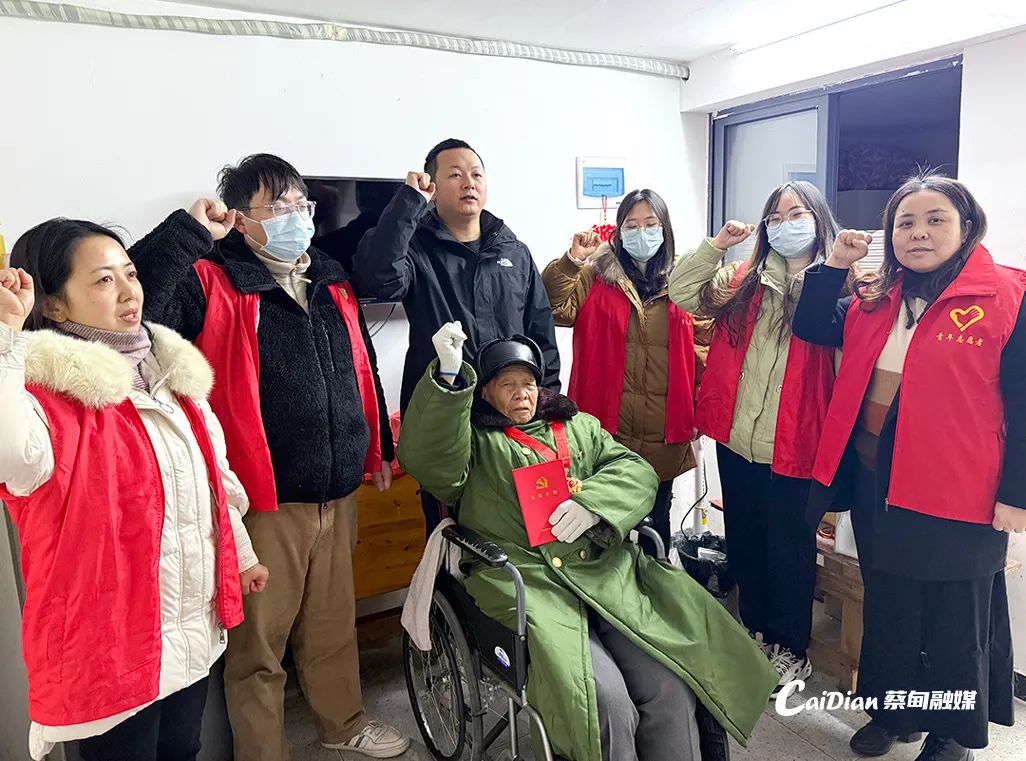 1月17日上午,龔家?guī)X社區(qū)黨員滿(mǎn)懷敬意,帶著精心準(zhǔn)備的生日蛋糕和米油等生活物資,來(lái)到張業(yè)榮老人家中,為他補(bǔ)辦100歲生日。張業(yè)榮佩戴著“光榮在黨50年”紀(jì)念章,深情高唱《沒(méi)有共產(chǎn)黨就沒(méi)有新中國(guó)》,與大家一起重溫入黨誓詞,講述往昔革命故事。