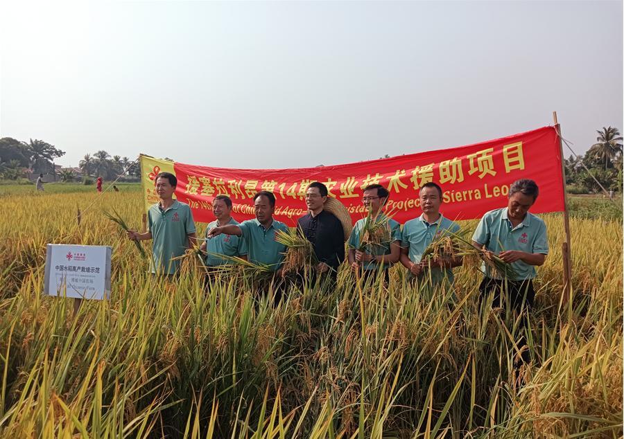 捐贈(zèng)儀式后,大家參觀了中國農(nóng)業(yè)專家組指導(dǎo)種植的高產(chǎn)水稻示范田,并體驗(yàn)了水稻收割活動(dòng)。中國駐塞拉利昂大使王擎和博城市市長穆薩還為示范田旁新建的中國—塞拉利昂友誼橋揭牌。