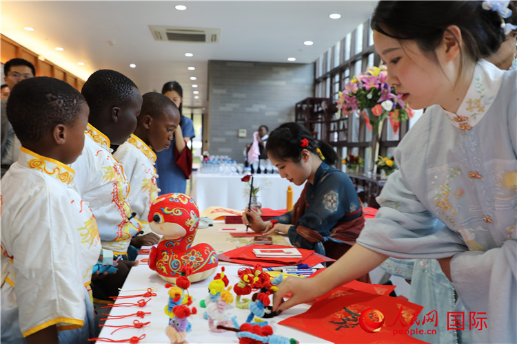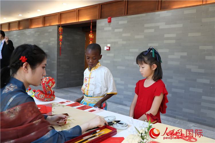 中國書法、剪紙等文化體驗活動吸引小朋友駐足欣賞。人民網(wǎng)記者 戴楷然攝