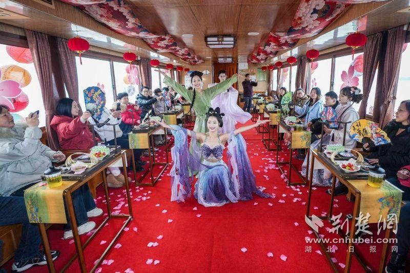 據(jù)介紹,全新上線的精品環(huán)湖游將為游客帶來(lái)沉浸式國(guó)風(fēng)演藝體驗(yàn),從楚風(fēng)園碼頭出發(fā),在游客登船之際,精彩好戲就已正式開(kāi)鑼。畫(huà)舫離岸,演出開(kāi)始,《元夕》《一面驚鴻》《錦瑟》等國(guó)風(fēng)舞蹈亮相甲板,表演者們霓裳蹁躚,或婉約柔美,或英氣颯爽,在游客面前隨著悠揚(yáng)楚樂(lè),將楚舞的神韻演繹得絲絲入扣,不時(shí)還與游客隨機(jī)互動(dòng),同賀新春。