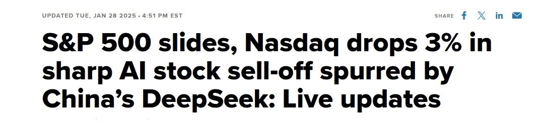 CNBC:人工智能股票在DeepSeek的刺激下大幅拋售