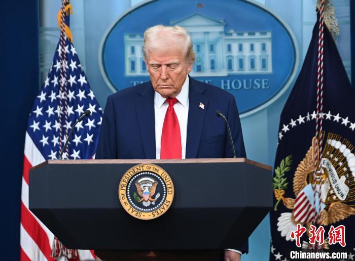 當(dāng)?shù)貢r(shí)間1月30日,華盛頓,美國(guó)總統(tǒng)特朗普在白宮舉行記者會(huì),通報(bào)1月29日華盛頓撞機(jī)事故情況。他說(shuō),這起客機(jī)與軍用直升機(jī)相撞事故無(wú)人生還。圖為特朗普在記者會(huì)開(kāi)始前為事故遇難者默哀。 中新社記者 陳孟統(tǒng) 攝