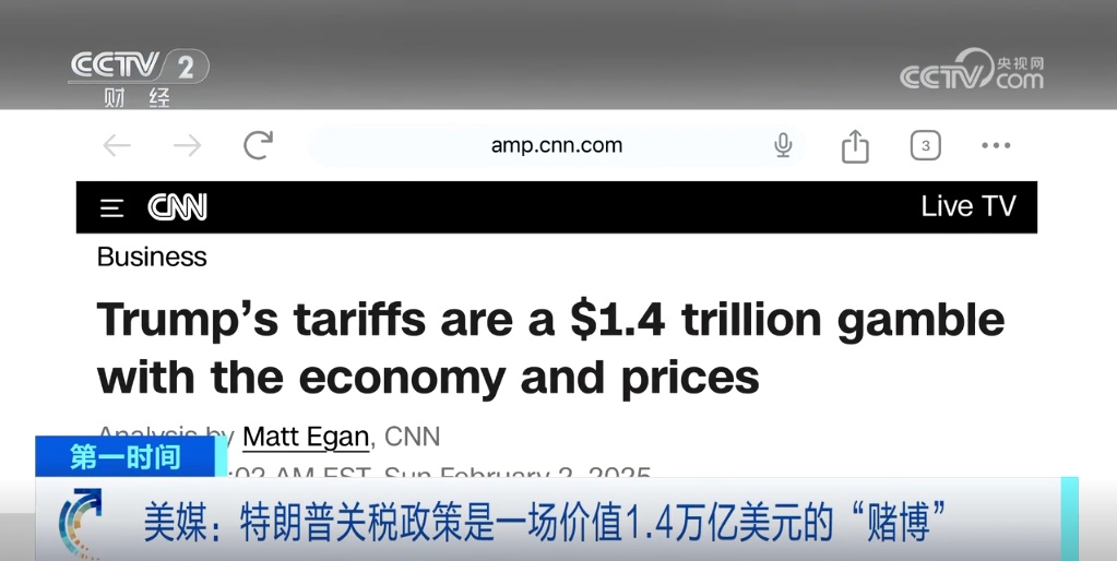 美國有線電視新聞網(wǎng)的報道稱,關(guān)稅是特朗普最喜歡的“經(jīng)濟武器”。特朗普2月1日簽署行政令,宣布對約1.4萬億美元的進口商品加征關(guān)稅,是特朗普第一任期內(nèi)加征關(guān)稅商品價值的三倍多。報道指出,“這是一場巨大的賭博”,事關(guān)美國選民最關(guān)心的兩件事:經(jīng)濟與生活成本。報道稱,分析人士指出,特朗普的新關(guān)稅政策將可能帶來巨大風(fēng)險,比如導(dǎo)致經(jīng)濟放緩、通脹加劇,引發(fā)股市波動,以及在“貿(mào)易戰(zhàn)”中扼殺就業(yè)機會等。美國《華爾街日報》發(fā)表了一篇名為《史上最愚蠢的貿(mào)易戰(zhàn)》的評論文章,認(rèn)為特朗普對加拿大和墨西哥進行“經(jīng)濟攻擊毫無道理”,并警告稱這一戰(zhàn)略可能會以災(zāi)難告終。