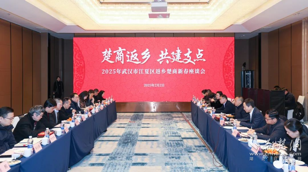 江夏區(qū)“楚商返鄉(xiāng) 共建支點(diǎn)”2025年新春座談會(huì)現(xiàn)場(chǎng)。通訊員供圖
