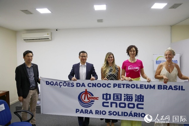 中國海油巴西公司向里約慈善協(xié)會捐贈1000份生活基本物資籃。人民網(wǎng)記者 陳海琪攝