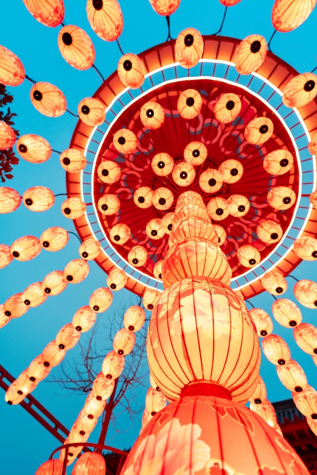 上百萬盞精美的花燈如星星點點布滿樹梢,