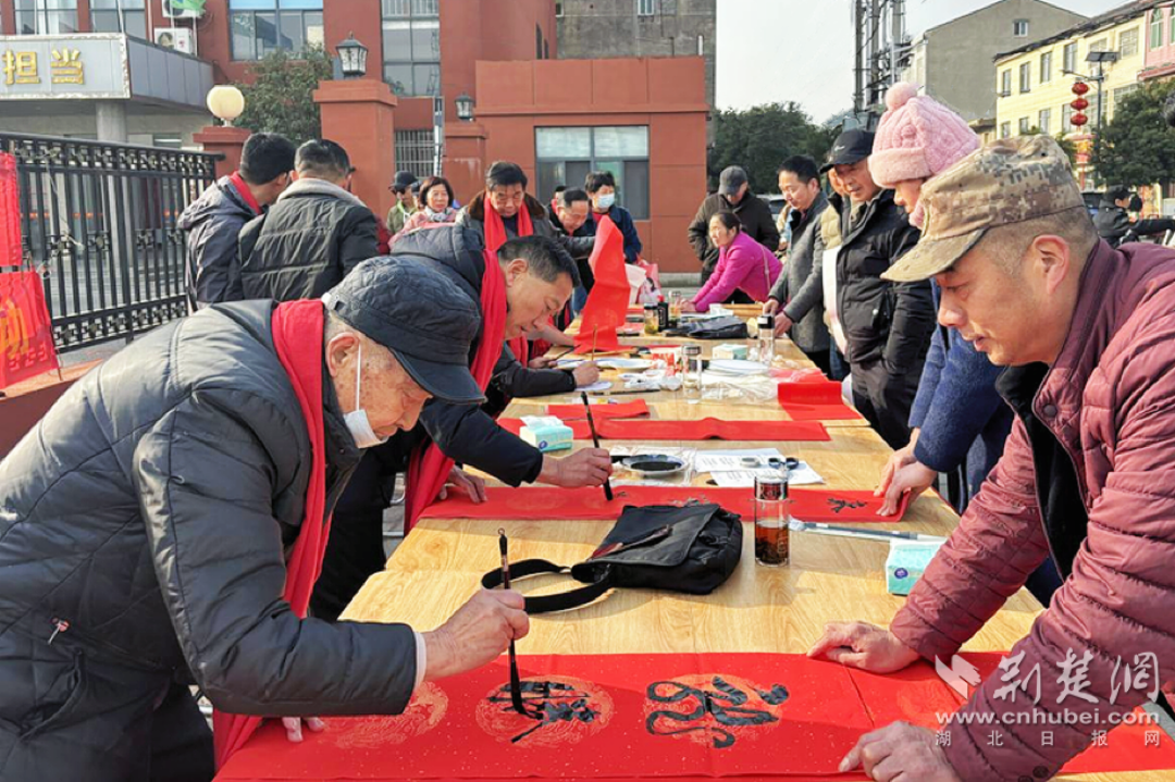 荊楚網(wǎng)(湖北日?qǐng)?bào)網(wǎng))訊(記者黃菲、李好 通訊員李健初、鄒圓圓)龍騰四海辭舊歲,蛇舞九洲賀新春。蛇年春節(jié)前夕,走進(jìn)孝昌縣花西鄉(xiāng),鎮(zhèn)區(qū)主街一側(cè)格外熱鬧,案臺(tái)上紅火的春聯(lián)紙鋪陳開(kāi)來(lái),來(lái)自孝昌縣書(shū)法協(xié)會(huì)的老師們正挽袖書(shū)作,寫(xiě)字的筆走游龍、一氣呵成,作畫(huà)的下筆有神、栩栩如生,傳遞著美好的新春祝愿。