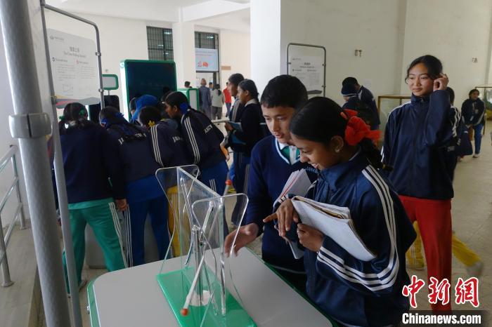 開幕式后,500余名尼泊爾中小學(xué)生參觀展覽。賈納塞瓦中學(xué)八年級學(xué)生桑迪亞·卡納爾一邊體驗展品,一邊做筆記。她興奮地對中新社記者說:“太有趣了!這是我第一次接觸這么多的科普展品,它們讓課本上的知識變得更加直觀、生動了?!?/p>
