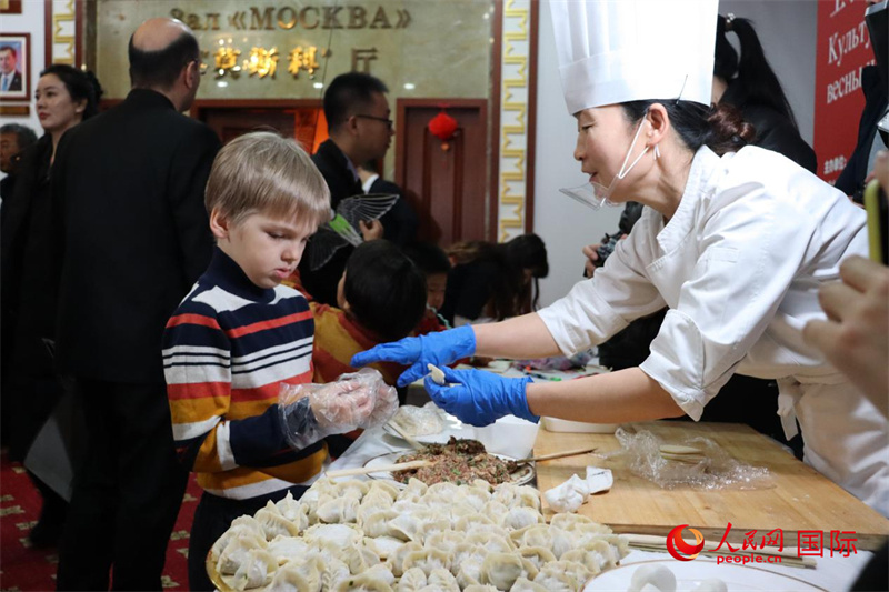 除了精彩的表演,活動(dòng)現(xiàn)場還設(shè)置了豐富的文化體驗(yàn)環(huán)節(jié)。上合組織國家駐華使節(jié)和家人們興致勃勃地參與了書法、繪畫等傳統(tǒng)藝術(shù)活動(dòng),感受中國傳統(tǒng)文化的博大精深。同時(shí),大家還親自上手,體驗(yàn)了包餃子、滾元宵等傳統(tǒng)美食的制作過程。現(xiàn)場最活躍的當(dāng)屬上合組織國家使節(jié)的孩子們,來自俄羅斯的 7 歲小男孩廖沙一會(huì)兒在風(fēng)箏涂色臺(tái)前認(rèn)真地為風(fēng)箏上色,一會(huì)兒又跑到包餃子處,努力學(xué)習(xí)如何用小小的面皮包裹大大的肉餡??粗钦J(rèn)真又略顯緊張的表情,不難看出,包餃子對他來說確實(shí)是個(gè)不小的挑戰(zhàn)。廖沙的媽媽切爾尼紹娃是上合秘書處國際部的工作人員,她一邊用手機(jī)記錄著兒子的歡樂瞬間,一邊感慨地說:“我在上合工作快一年半了,去年在景山公園就參加過中國春節(jié)的慶?;顒?dòng),當(dāng)時(shí)就被中國新年豐富多彩的活動(dòng)深深吸引。中國文化真是太神奇了!”