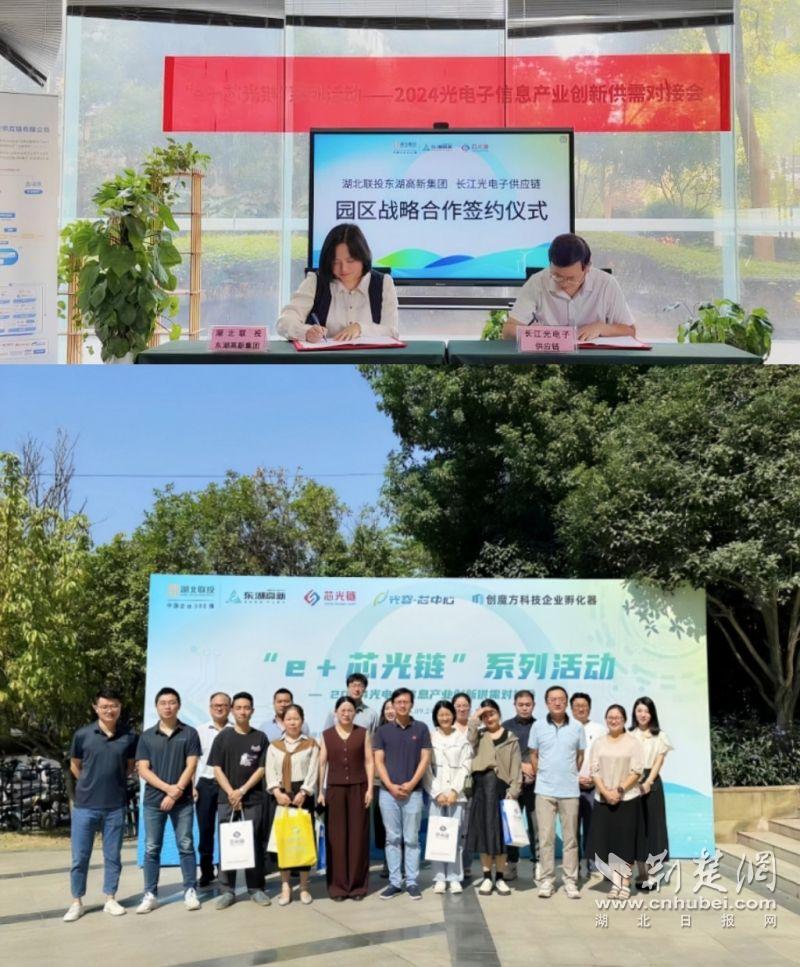 東湖高新集團(tuán)與湖北長(zhǎng)江光電子簽訂園區(qū)戰(zhàn)略合作協(xié)議,并共同策劃出品“e+芯光鏈”活動(dòng)。通訊員供圖