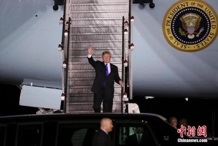 資料圖:美國總統(tǒng)特朗普乘坐“空軍一號”。 中新社記者 劉震 攝
