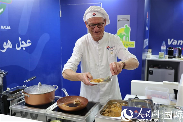 圖為一位廚師在海灣食品展上為觀眾烹飪?nèi)忸愂称?。人民網(wǎng)記者 張志文攝