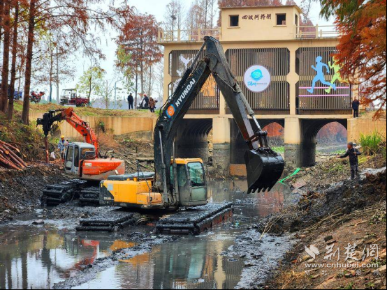 在主干渠四汊河閘段施工現(xiàn)場,渠道下部擋土墻已全部完工,挖掘機正在渠道內(nèi)清淤,10多名勞力在右岸渠坡栽鋪生態(tài)草坪。負責此標段施工的湖北威能建設(shè)工程有限公司項目經(jīng)理汪松清介紹:“為確保項目進度加快,又不過多影響居民群眾的生產(chǎn)生活,采取對渠系分段整治的方式,靈活推進項目建設(shè)。”