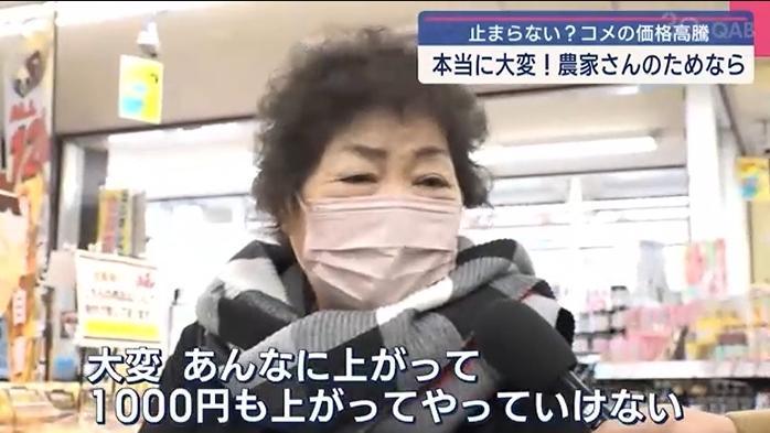 一名日本沖繩縣民眾表示米價(jià)上漲“讓人實(shí)在吃不消”。圖片來(lái)源:日本“琉球朝日放送”報(bào)道截圖