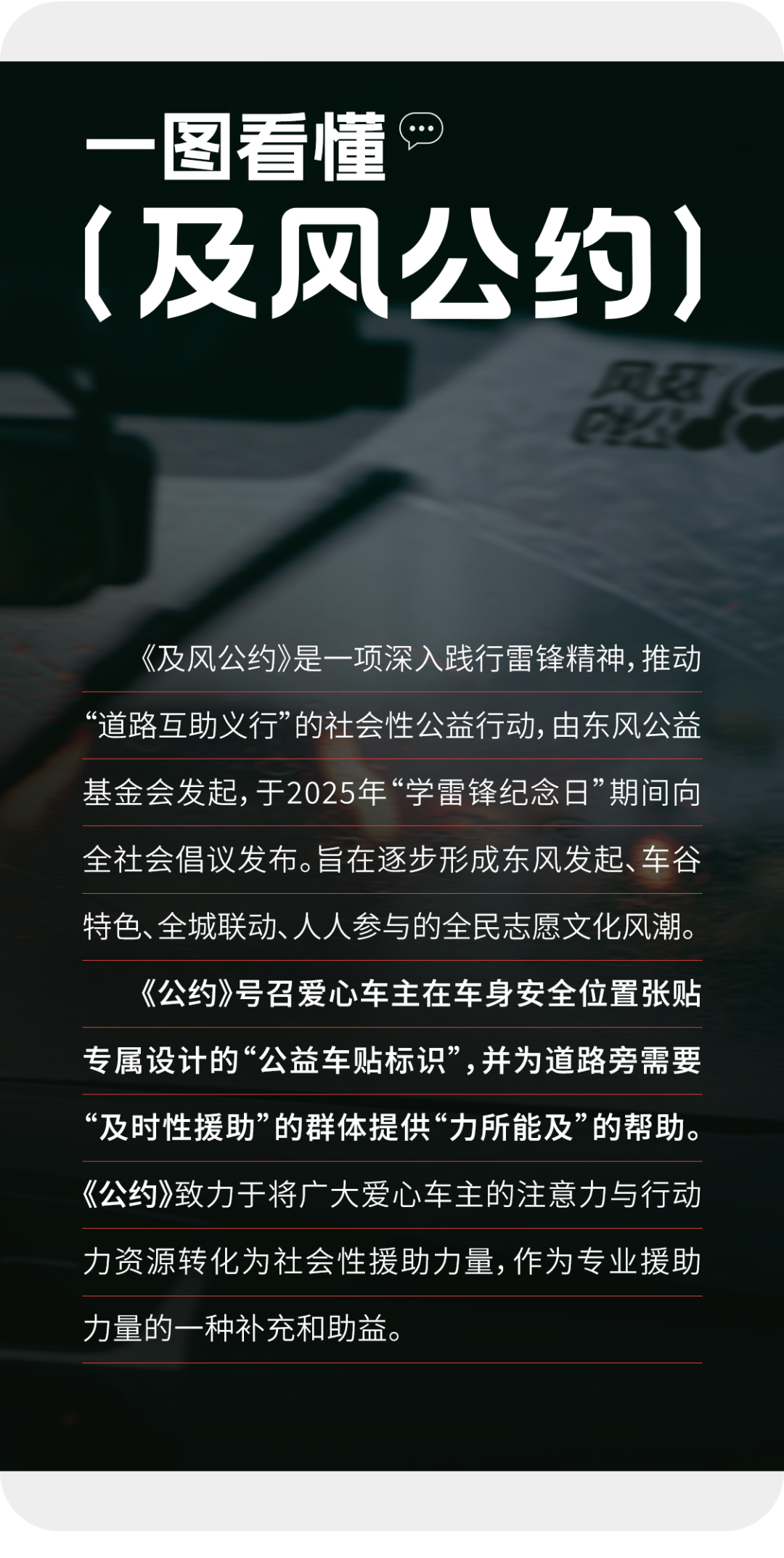 今天,我們以車(chē)輪為筆,重新書(shū)寫(xiě)新時(shí)代的雷鋒日記。當(dāng)千萬(wàn)車(chē)主的點(diǎn)滴善意匯成江河,這股東風(fēng)必將升騰而起,讓“及風(fēng)行動(dòng)”成為新時(shí)代向上向善的生動(dòng)注腳!