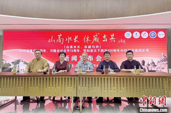 中新網(wǎng)雅加達(dá)3月6日電 (記者 李志全 實(shí)習(xí)生 徐裕琴)3月6日,“山高水長(zhǎng),休戚與共”——中印尼建交75周年、萬(wàn)隆會(huì)議召開(kāi)70周年、鄭和首次下西洋620周年中印尼書(shū)畫(huà)攝影展新聞發(fā)布會(huì)在雅加達(dá)舉行,印尼書(shū)法家協(xié)會(huì)主席阮淵樁、印尼書(shū)畫(huà)學(xué)院院長(zhǎng)王玉斌、印尼阿拉扎大學(xué)孔子學(xué)院中方院長(zhǎng)王大昕、印尼永安藥業(yè)集團(tuán)董事長(zhǎng)胡素丹等嘉賓出席發(fā)布會(huì),并介紹書(shū)畫(huà)攝影展的有關(guān)情況。