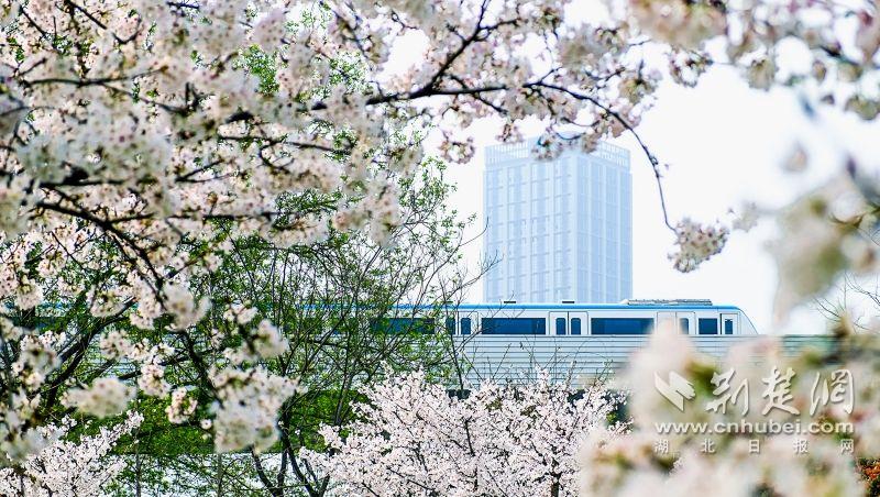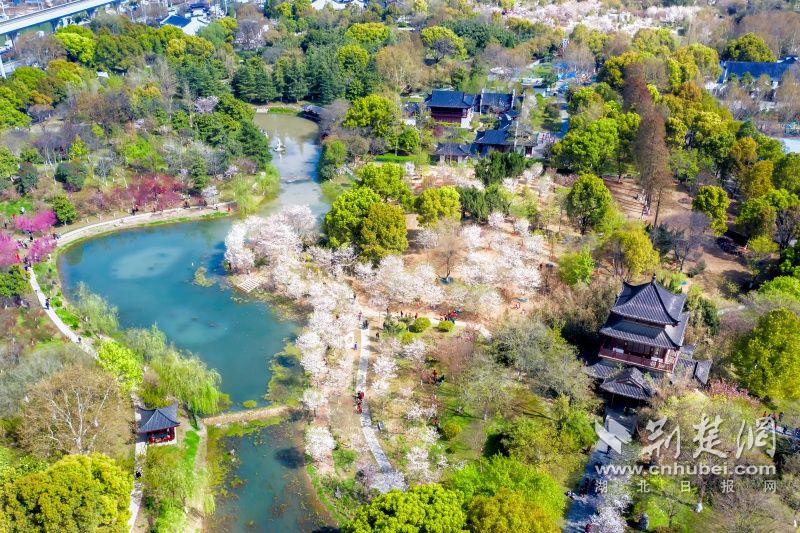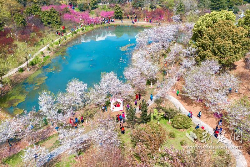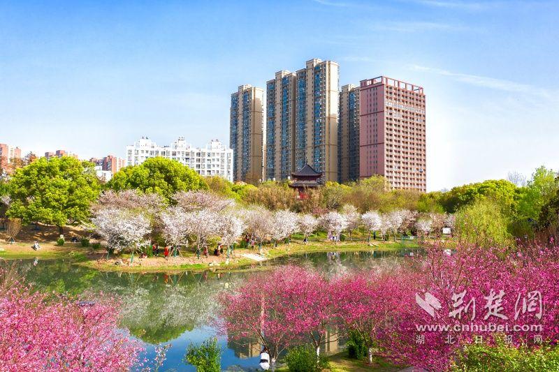 作為武漢“必打卡十大賞櫻點(diǎn)”之一的堤角公園內(nèi)共有櫻花樹(shù)1500余株22種,花期從3月一直到4月。通訊員供圖