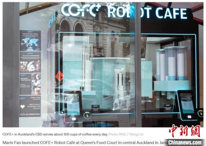 據(jù)新西蘭“鄉(xiāng)音”網(wǎng)報道,瑪麗·范(Marie Fan)今年1月在奧克蘭市中心的皇后美食廣場(Queen's Food Court)開設(shè)了COFE+機器人咖啡館。