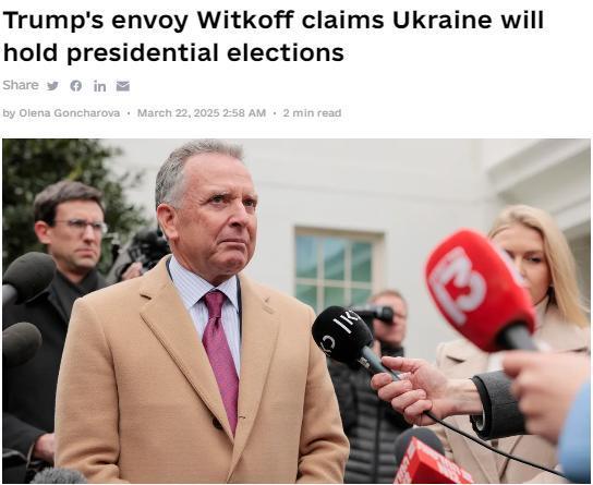 中新網(wǎng)3月22日電 據(jù)《基輔獨(dú)立報(bào)》報(bào)道,當(dāng)?shù)貢r(shí)間21日,美國中東問題特使史蒂文·威特科夫在接受美國新聞評(píng)論員塔克·卡爾森的采訪時(shí)表示,烏克蘭領(lǐng)導(dǎo)層已同意將舉行總統(tǒng)選舉。