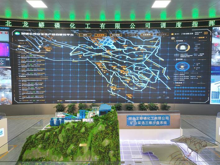 湖北龍蟒磷化工有限公司調(diào)度指揮中心智慧大屏。 (陳泉霖 田月朋 攝)