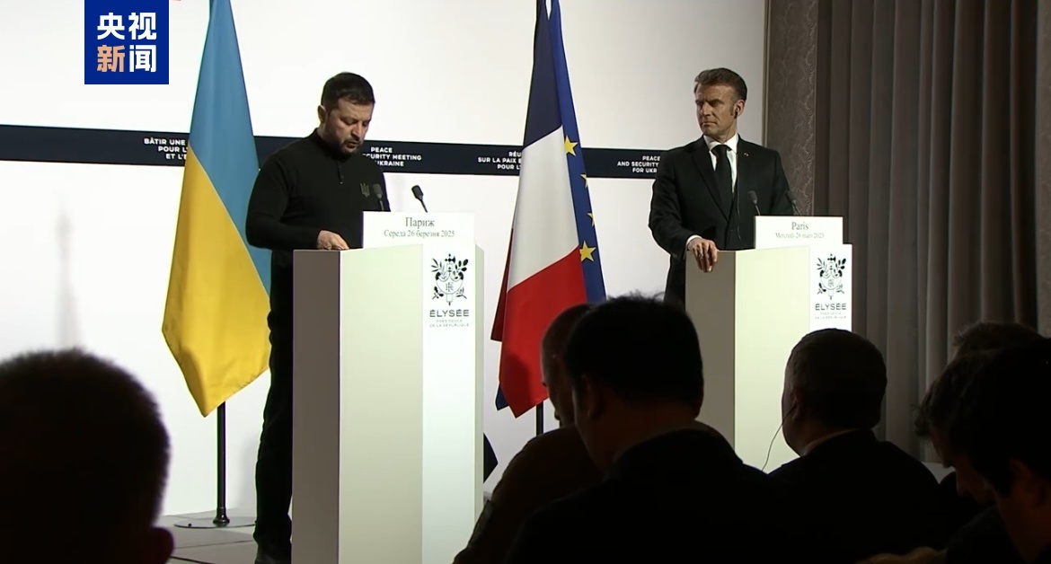 當(dāng)?shù)貢r(shí)間3月26日,法國(guó)總統(tǒng)馬克龍與烏克蘭總統(tǒng)澤連斯基在愛麗舍宮會(huì)面后召開聯(lián)合新聞發(fā)布會(huì)。