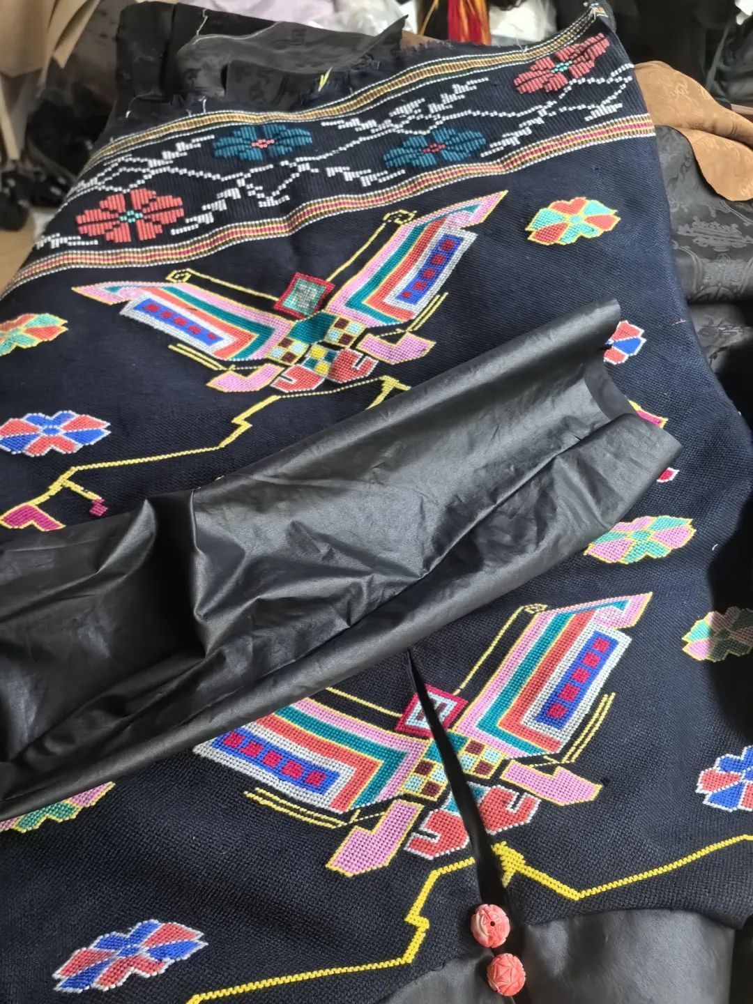兼熹南錦品牌創(chuàng)始人馬黎的作品《熹南錦新鳳穿牡丹蝴蝶香旗袍》亮相2024年倫敦手工藝周“設(shè)計(jì)中國·和韻華夏”主題展?恩施作品,亮相倫敦!