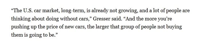 “從長期來看,美國汽車市場已不再增長,越是推高新車價(jià)格,不買車的人就會(huì)越多?!泵绹墩汀沸侣劸W(wǎng)報(bào)道截圖