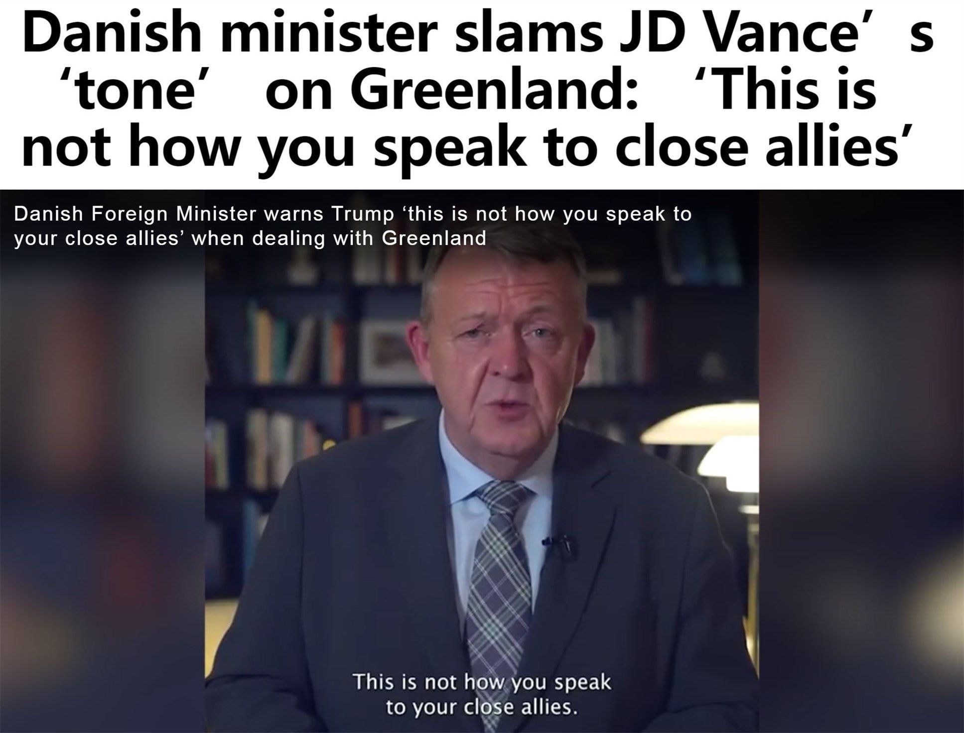 “美國方面這些天對丹麥有很多指責,我們愿意接受批評,但坦率地說,我們不欣賞美方說話的這種口氣,這不是一種與親密盟友對話的方式。”