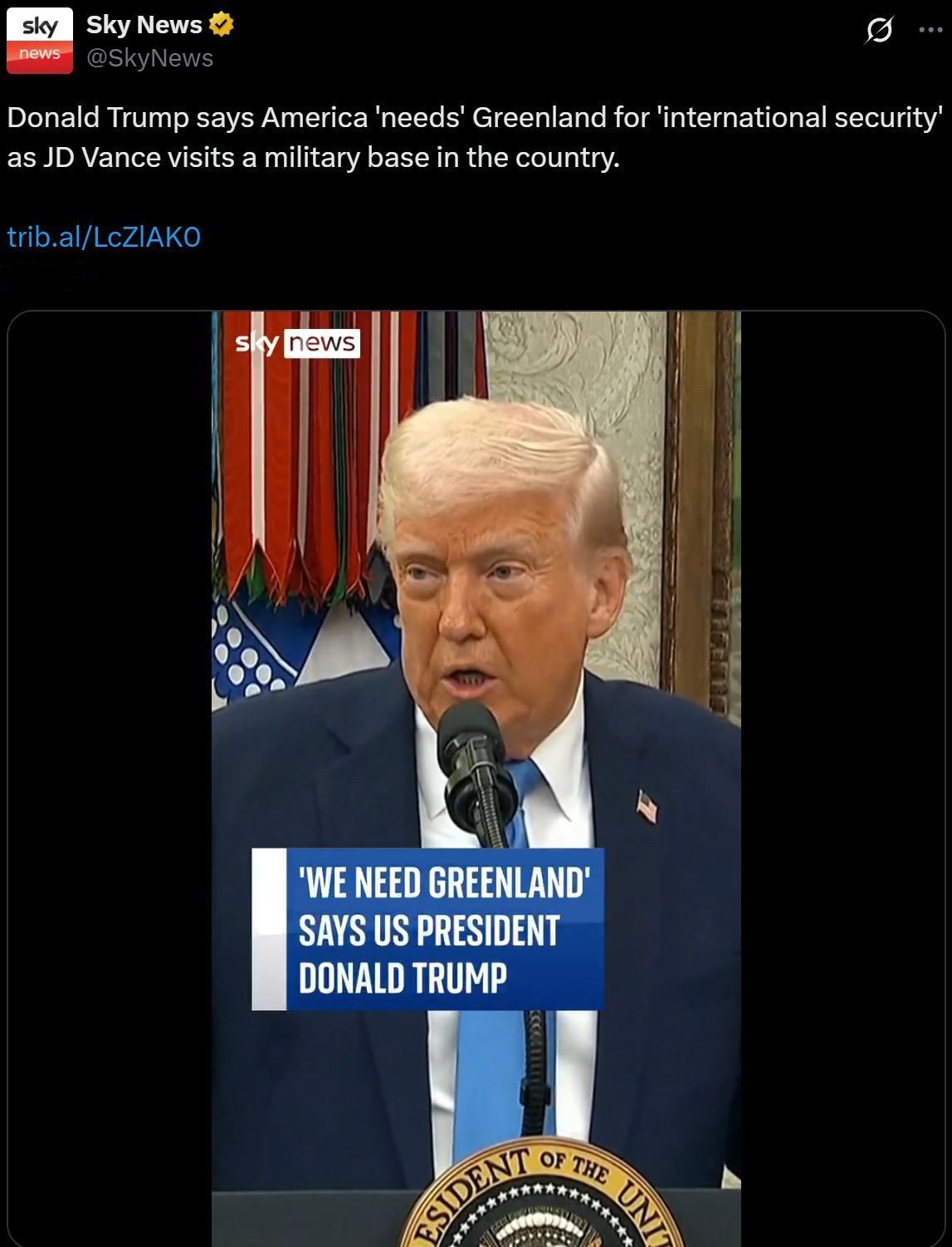 “格陵蘭島對于美國的安全至關(guān)重要,而它現(xiàn)在非常脆弱。如果格陵蘭島人民愿與美國合作,而且我也認為他們最終會與美國合作,我們可以讓他們更安全?!?/p>