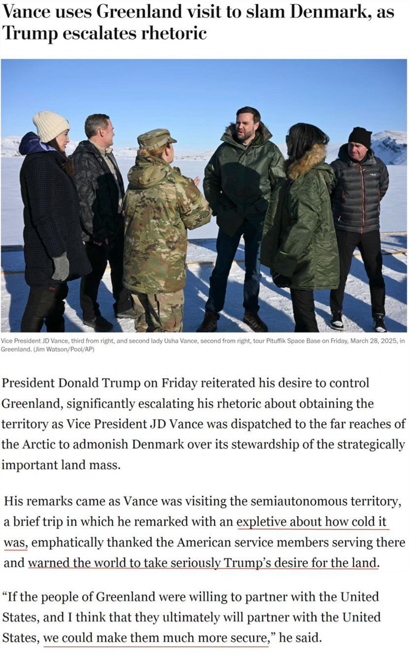 事實上,萬斯一行此次對格陵蘭島的訪問相當不受歡迎。