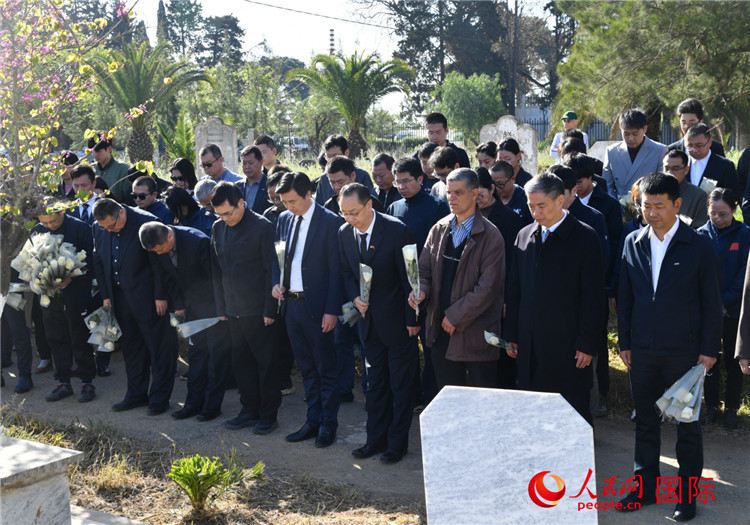 人民網(wǎng)阿爾及爾4月2日電 (記者郝瑞敏)清明節(jié)前夕,中國(guó)駐阿爾及利亞大使董廣利率使館全體館員、援阿醫(yī)療隊(duì)、在阿新聞媒體機(jī)構(gòu)、30余家中資企業(yè)代表近200人赴阿爾及爾阿利亞國(guó)家公墓,為長(zhǎng)眠在此的中國(guó)同胞掃墓。在莊嚴(yán)肅穆的氛圍中,董廣利偕全體人員向犧牲烈士和已故同胞鞠躬致哀,敬獻(xiàn)鮮花,寄托無(wú)限哀思。