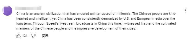 在他視頻的評(píng)論區(qū)中,外國(guó)網(wǎng)友紛紛稱,因?yàn)樗闹辈?,開始真正了解中國(guó)。