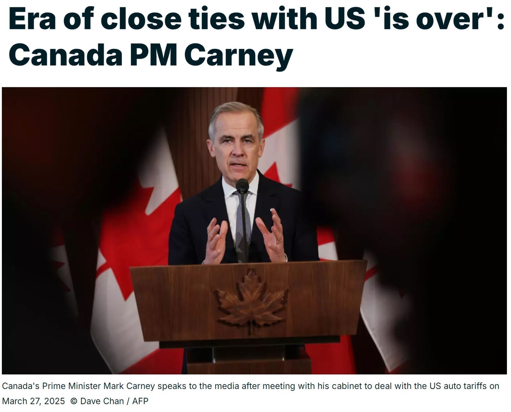 加拿大總理卡尼上周表示,加拿大與美國的傳統(tǒng)關(guān)系“結(jié)束了”。