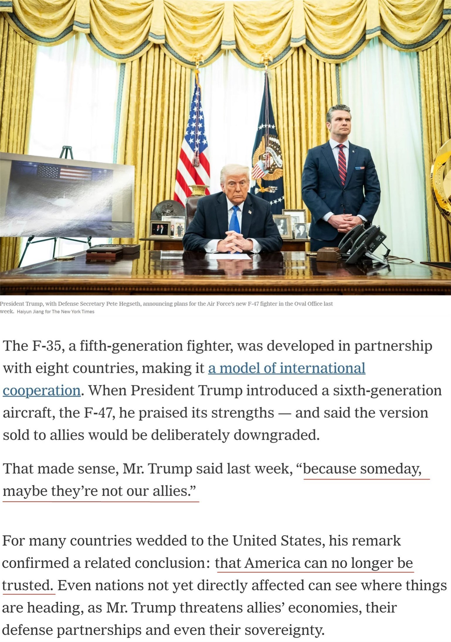 美國《紐約時(shí)報(bào)》注意到美國近期宣布研發(fā)的第六代戰(zhàn)斗機(jī)F-47。
