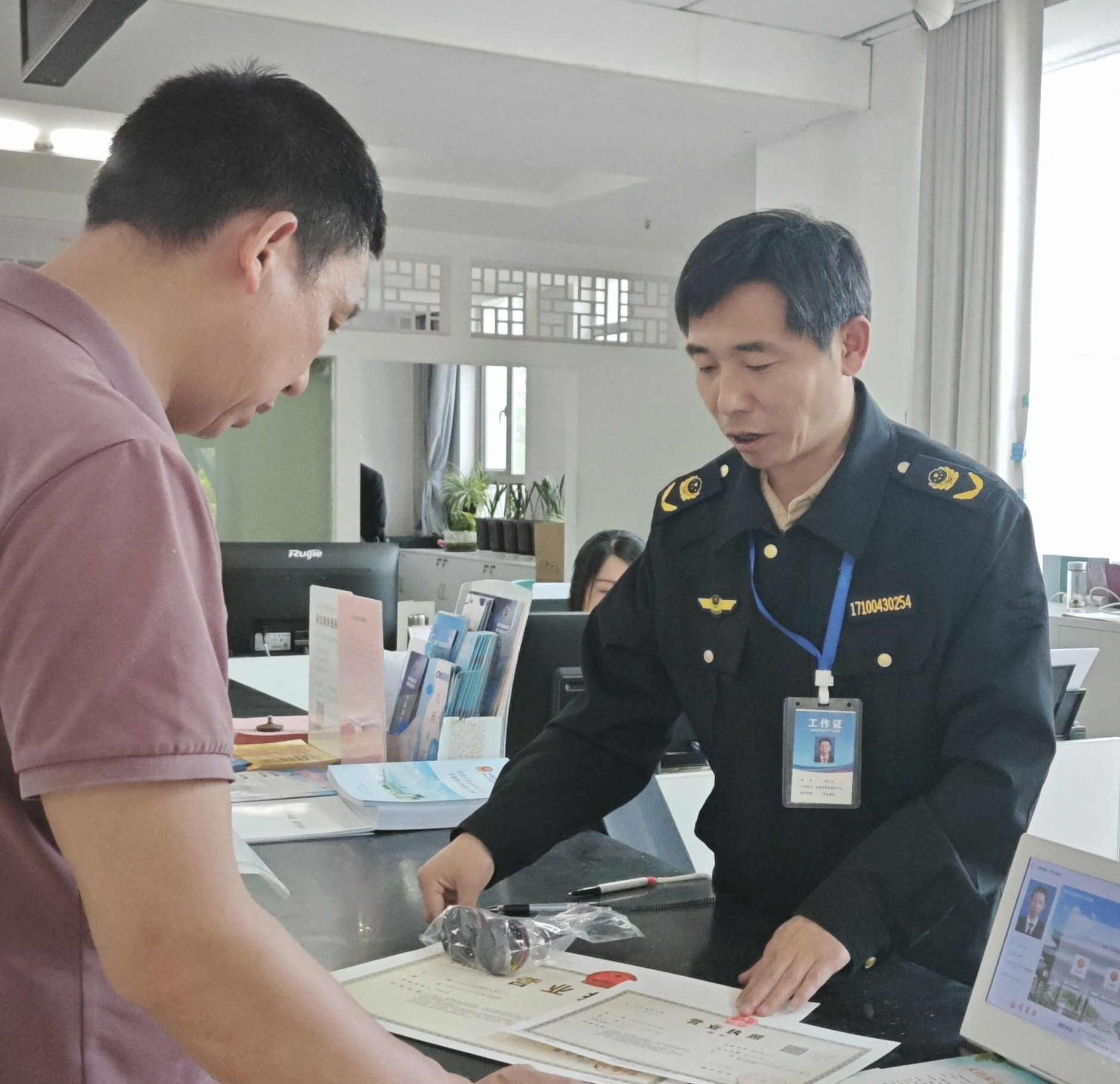 “原本以為要跑好幾趟,沒想到只填一次表、交一套材料,不到1小時就拿到了新執(zhí)照,保留了我們原來的統(tǒng)一社會信用代碼,還免費領取了公章!”劉先生對縣市場監(jiān)管局的工作效率連連稱贊。