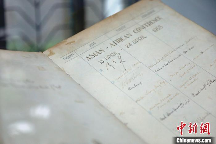 道路兩側(cè)綠意盎然,錯(cuò)落有致的荷蘭風(fēng)情建筑靜立其中,吸引著來(lái)自世界各地的游客。薩沃爾·霍曼飯店是當(dāng)年與會(huì)代表團(tuán)下榻之處,酒店大堂懸掛有萬(wàn)隆會(huì)議的老照片,一角的玻璃展柜中陳列著一本珍貴紀(jì)念簿,上面印有會(huì)議時(shí)間“1955年4月18日至24日”,第一個(gè)簽名便是“周恩來(lái)”(時(shí)任中國(guó)總理),字跡清晰可見(jiàn)。