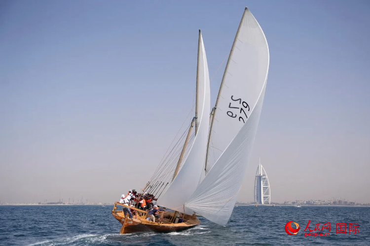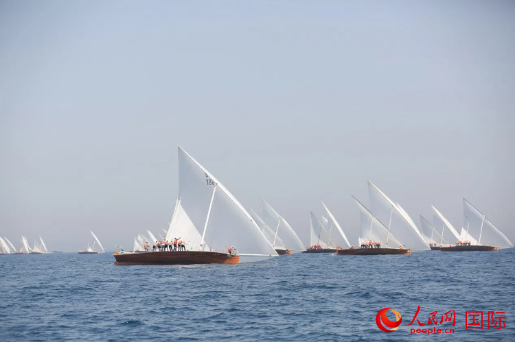 迪拜傳統(tǒng)單桅帆船賽現(xiàn)場。人民網(wǎng)塔里克·易卜拉欣攝
