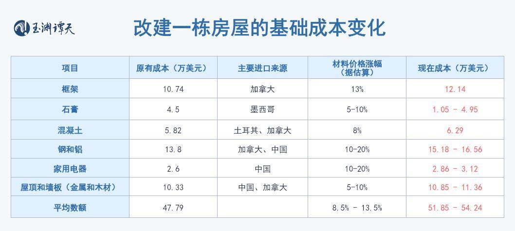 根據(jù)智能體測算,改建一棟房子的基礎(chǔ)材料成本,因為關(guān)稅硬生生增加了4.1萬到6.5萬美元,漲幅高達13.5%。