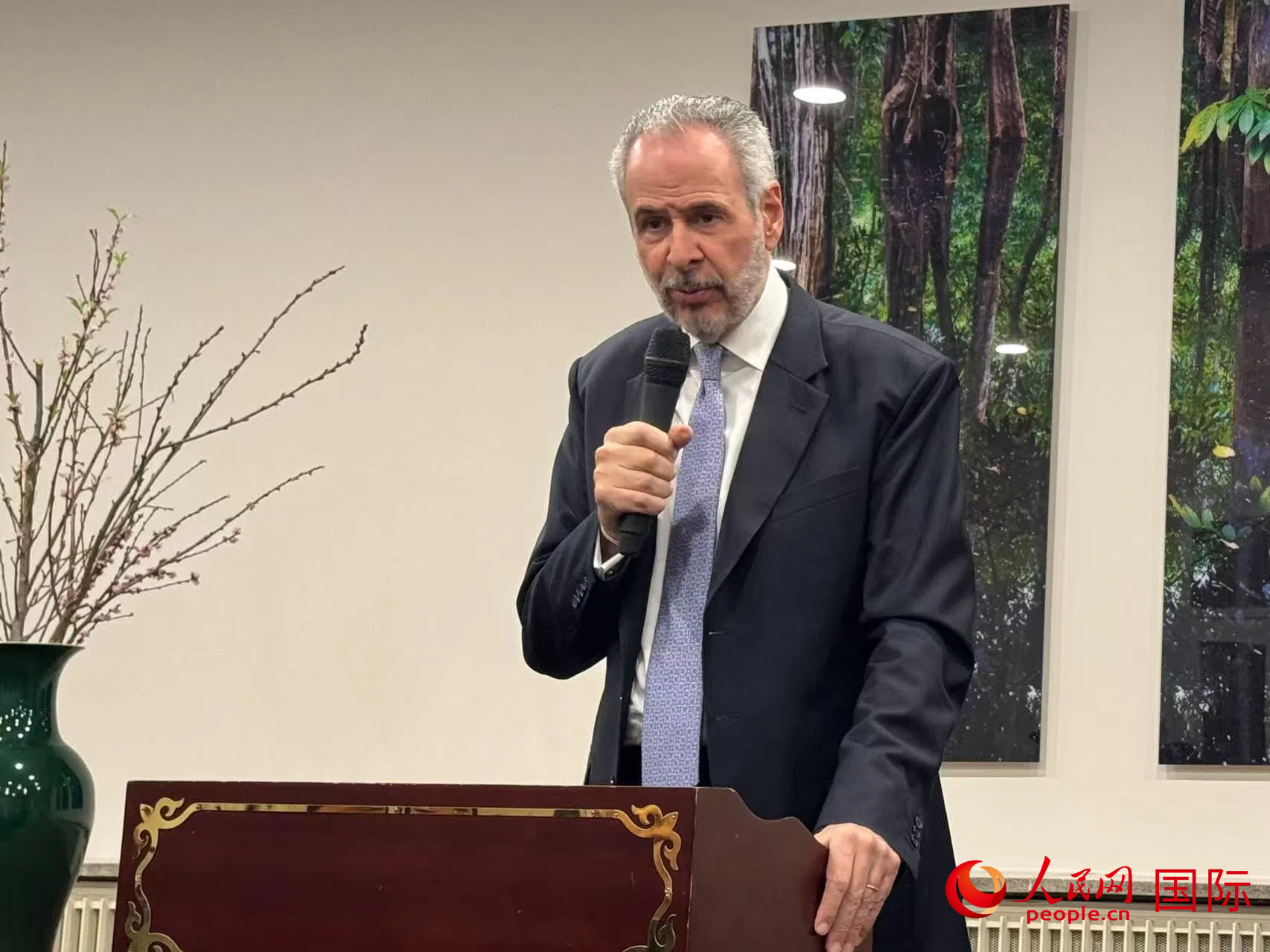 《聯(lián)合國氣候變化框架公約》第三十次締約方大會(huì)(COP30)候任主席安德烈·科雷亞·多拉戈18日在巴西駐華大使館舉行新聞發(fā)布會(huì)。人民網(wǎng)記者 蘇纓翔攝