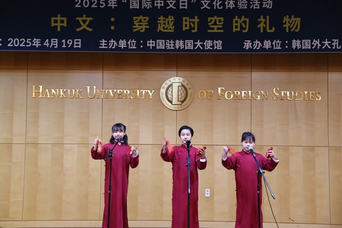 “國(guó)際中文日”活動(dòng)上的中國(guó)傳統(tǒng)文化表演。韓國(guó)外國(guó)語(yǔ)大學(xué)供圖
