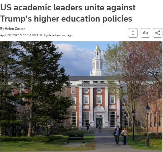 美媒指出,此舉系哈佛大學(xué)指責(zé)政府“威脅其辦學(xué)自主權(quán)”后,美國學(xué)術(shù)界發(fā)起的集體抗議行動(dòng)。