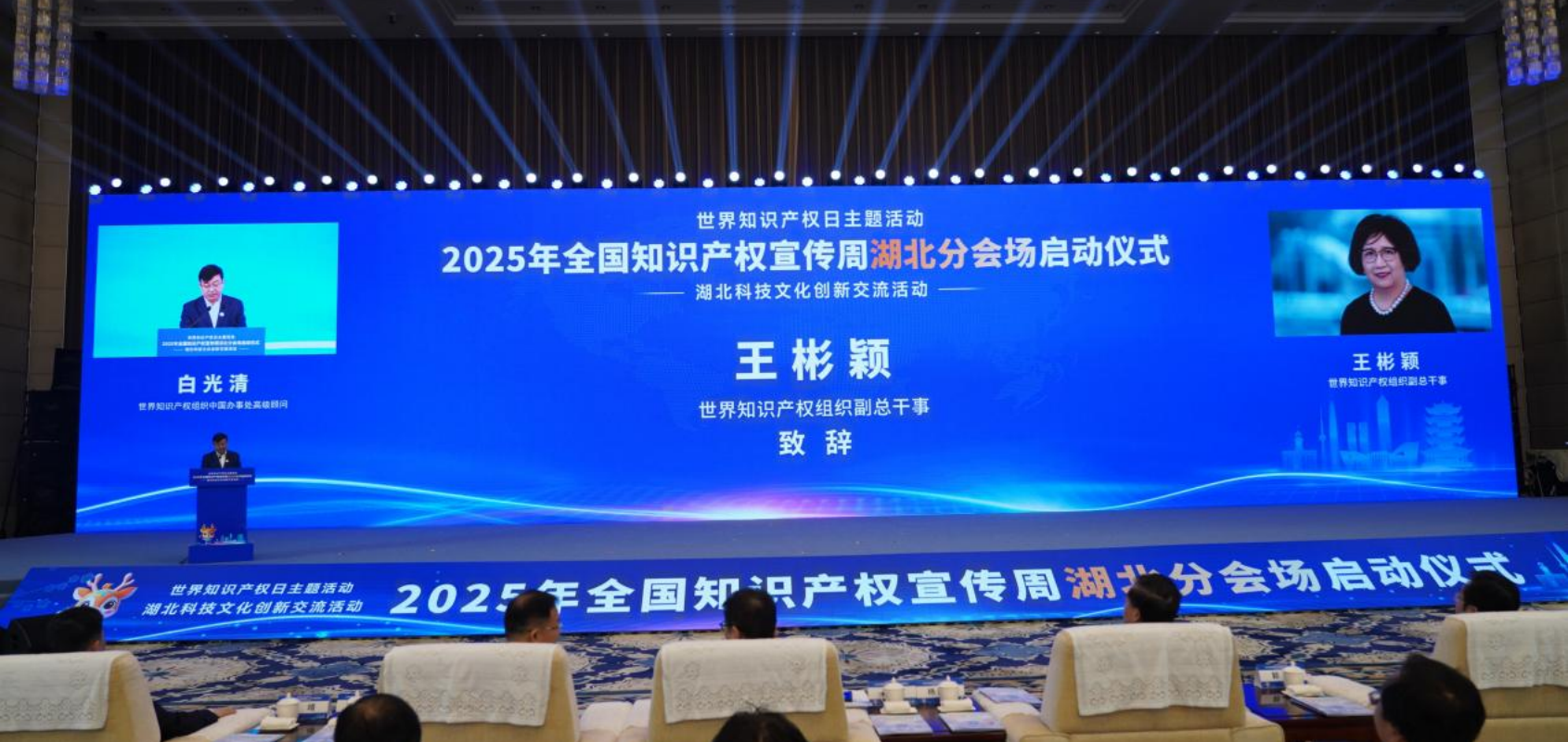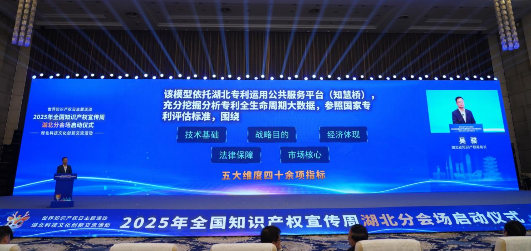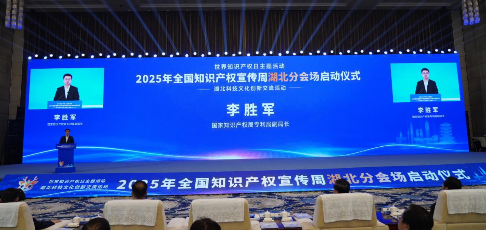 活動(dòng)現(xiàn)場(chǎng),世界知識(shí)產(chǎn)權(quán)組織副總干事王彬穎發(fā)來(lái)書面致辭,國(guó)家知識(shí)產(chǎn)權(quán)局專利局副局長(zhǎng)李勝軍現(xiàn)場(chǎng)致辭,湖北省人大常委會(huì)副主任楊云彥出席并啟動(dòng)湖北分會(huì)場(chǎng),湖北省人民政府副秘書長(zhǎng)郭宇、世界知識(shí)產(chǎn)權(quán)組織中國(guó)辦事處高級(jí)顧問(wèn)白光清、湖北省知識(shí)產(chǎn)權(quán)局局長(zhǎng)吳駿出席活動(dòng)。來(lái)自專利審查協(xié)作湖北中心,省知識(shí)產(chǎn)權(quán)戰(zhàn)略實(shí)施工作聯(lián)席會(huì)議成員單位,國(guó)家知識(shí)產(chǎn)權(quán)強(qiáng)國(guó)建設(shè)試點(diǎn)示范城市、縣域政府及園區(qū)管委會(huì),全省各市州知識(shí)產(chǎn)權(quán)局,省內(nèi)高校院所、企事業(yè)單位代表等500余人齊聚一堂。