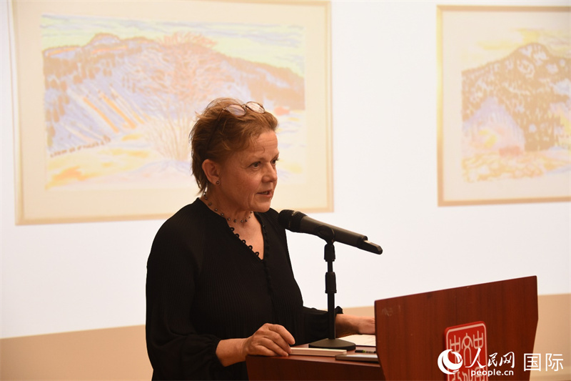 瑞典著名畫家比麗塔·穆爾作藝術講座。人民網(wǎng)記者 殷淼攝