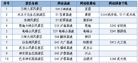 流量集中的高速公路收費(fèi)站主要有S15漢蔡高速琴臺(tái)站,S7武鄂高速龔家?guī)X站,S1岱黃高速府河站,S58三峽高速宜昌站,S17硚孝高速徑河站,G50滬渝高速黃石北站、潛江站,G55二廣高速荊州中站、襄陽西站,G70 福銀高速十堰東站。